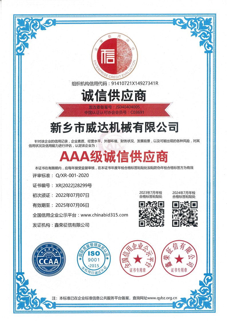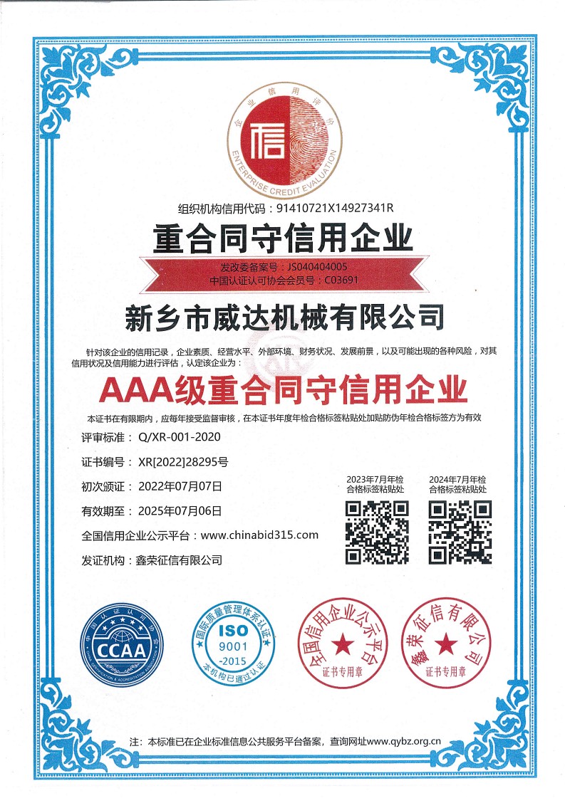 新鄉(xiāng)市威達機械有限公司,位于中原腹 地、黃河之濱—河南省新鄉(xiāng)縣小冀。濱臨京廣鐵路,107國道,距省會鄭州70Km,地理位置優(yōu)越,交通、通訊設施便利。公司成立于1997年6月,占地面積45000平方米,車間面積30000平方米,注冊資金5300萬元,職工275人,其中技術人員35余人。經(jīng)營范圍:礦山機械制造;專用設備制造;通用設備制造;機械電氣設備制造;機械設備研發(fā);工程和技術研究和試驗發(fā)展;礦山機械銷售;機械電氣設備銷售;機械設備銷售;機械設備租賃;技術服務、技術開發(fā)、技術咨詢、技術交流、技術轉讓、技 術推廣;普通機械設備安裝服務;電氣設備修理;產(chǎn)品主要用于煤炭、礦山、焦炭、鋼鐵、水電、火電、化工、水泥等行業(yè),產(chǎn)品銷往國內(nèi)外。